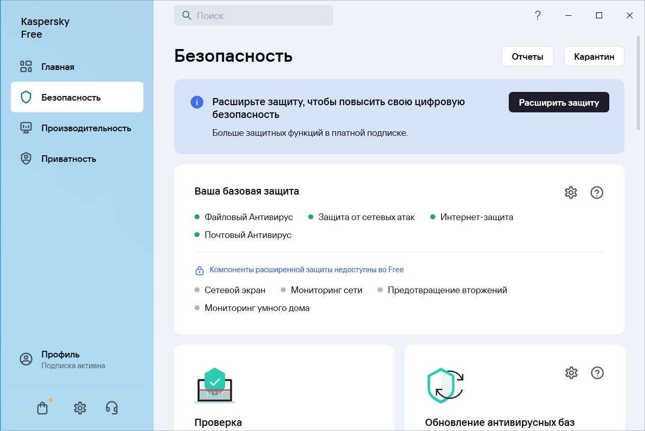 Основные возможности Kaspersky Free: