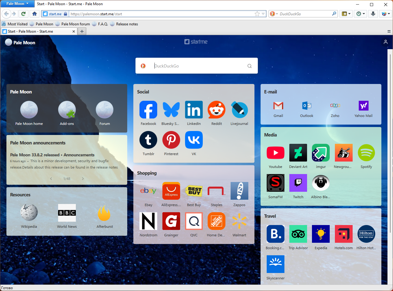 Быстрый и стабильный браузер для Windows - Pale Moon, созданный на базе популярного браузера Mozilla Firefox. Pale Moon отличается быстротой и стабильностью. Поэтому, если у вас есть опыт использования браузера Firefox, вы не испытаете трудностей при его использовании. Оптимизация исходного кода только под нужные функции наряду с сохранением совместимости с многими расширениями Firefox позволила получить высокую стабильность работы и немалый прирост скорости (около 25%, по результатам теста SunSpider) по сравнению со своим прообразом.