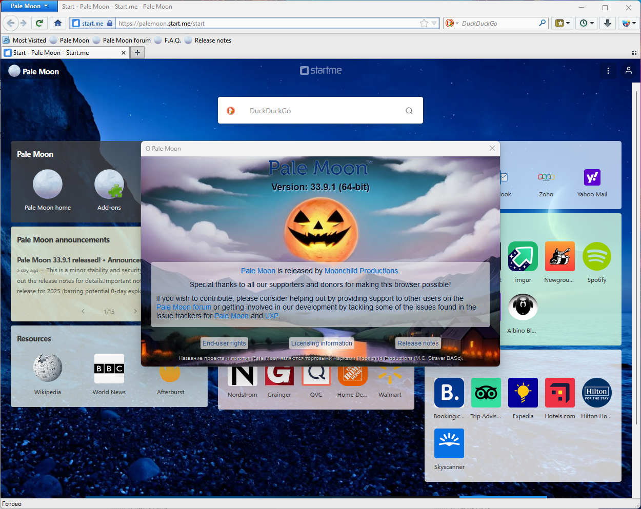 • Поддержка эксклюзивных расширений и тем для Pale Moon