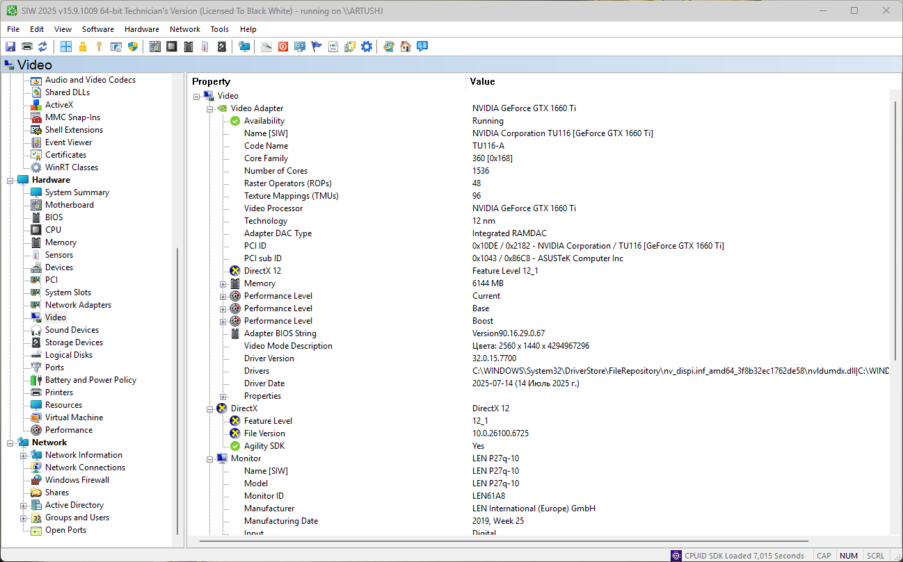 • Видео карта / Видео система