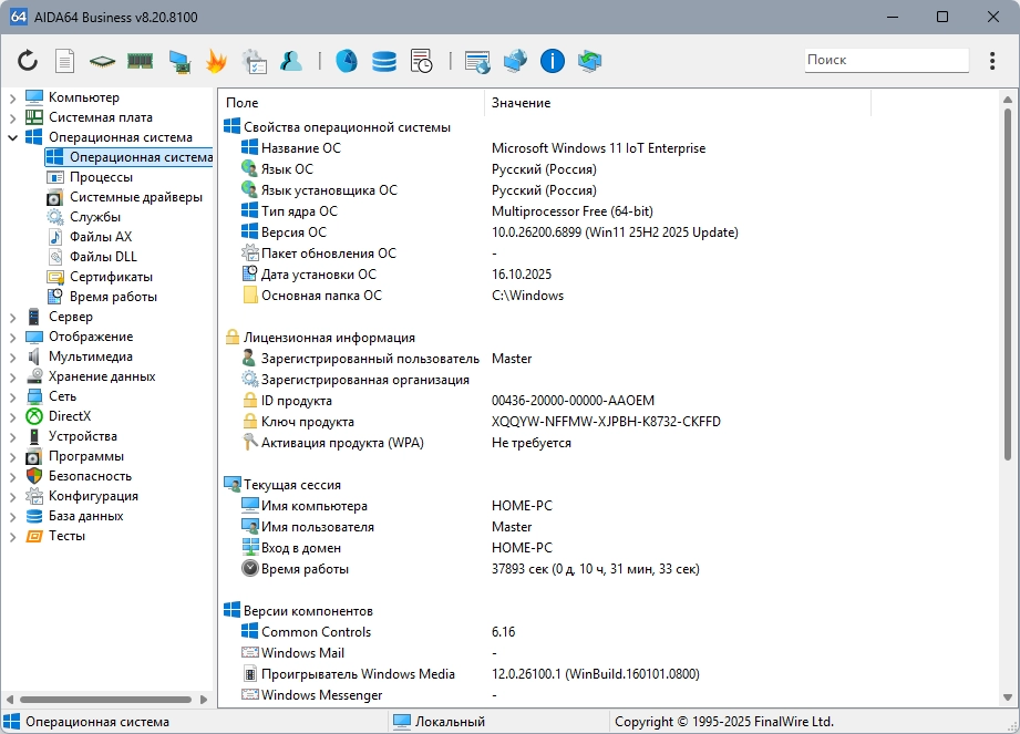 • Подробная информация о Windows, включая дату установки, лицензионный ключ и многое другое