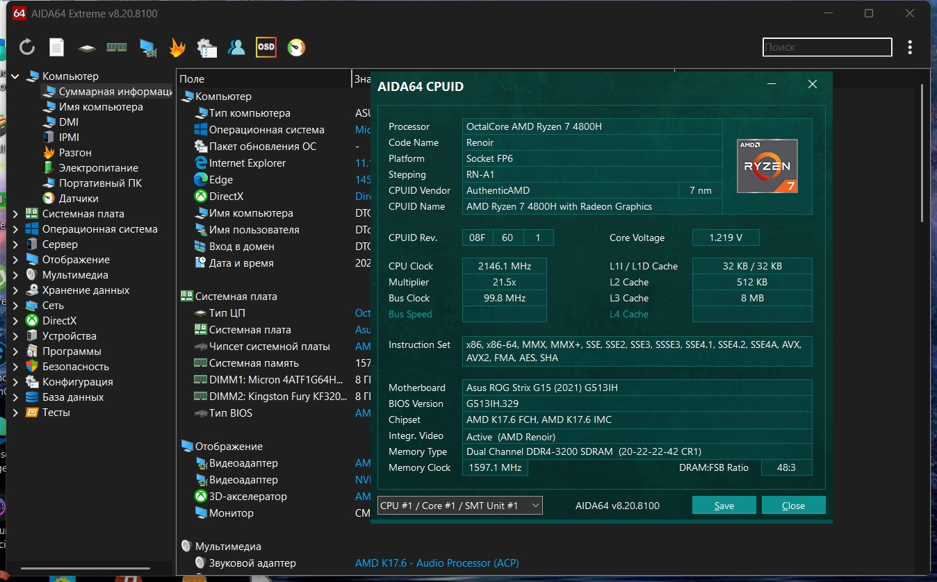 Информация о системе AIDA64 8.20.8100 by Dodakaedr
