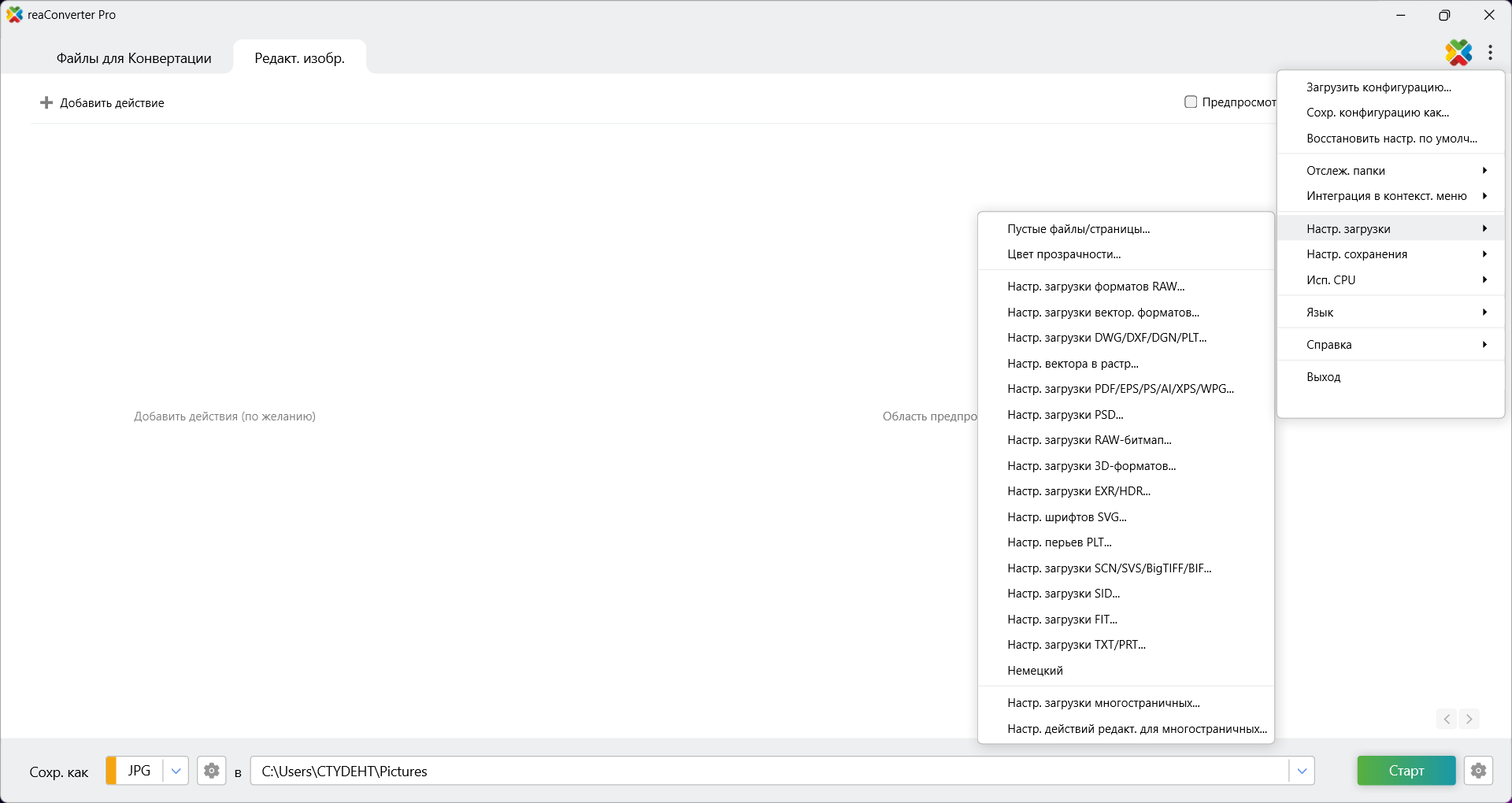 reaConverter — это универсальная программа для массового преобразования графических файлов, которая поддерживает более 500 различных форматов. С помощью этого инструмента пользователи могут легко конвертировать изображения между популярными форматами, изменять их размер, а также выполнять множество других операций, таких как редактирование, улучшение качества, добавление водяных знаков и многое другое.