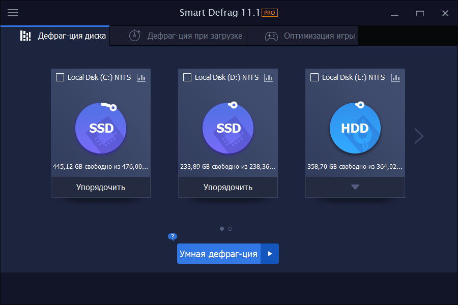 Smart Defrag упрощает структуру файловой системы, размещая часто используемые файлы и каталоги в быстрые области диска, что позволяет компьютеру работать на максимальной скорости с высокой стабильностью.