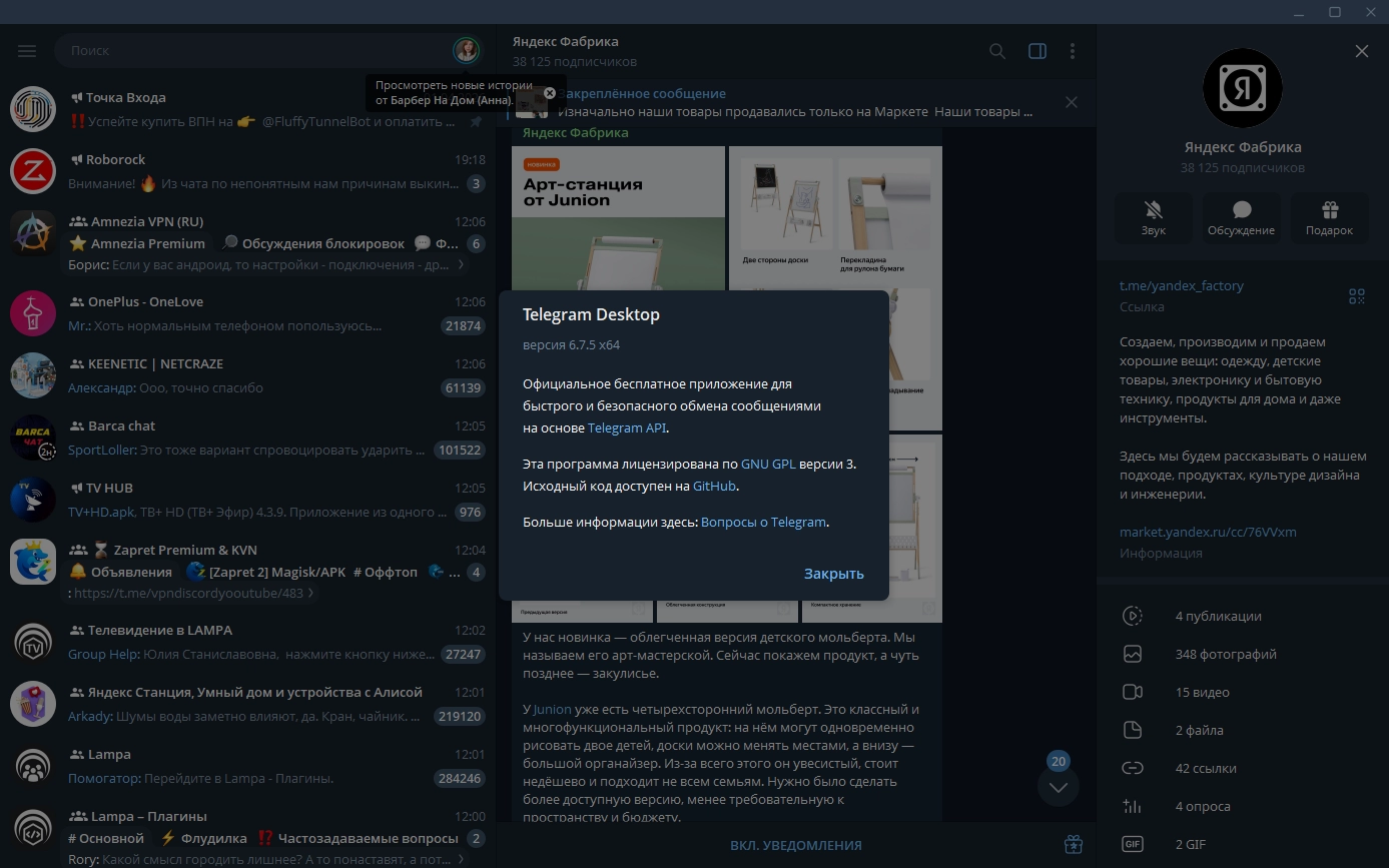 Телеграм для Windows Telegram Desktop 6.7.5 by Dodakaedr