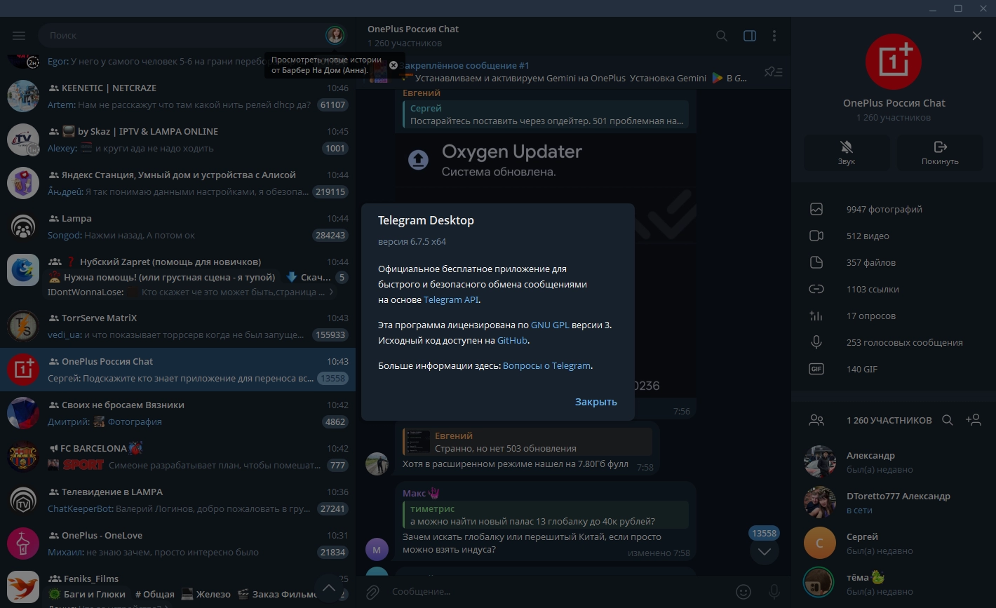Популярный мессенджер Telegram Desktop 6.7.5 by elchupacabra