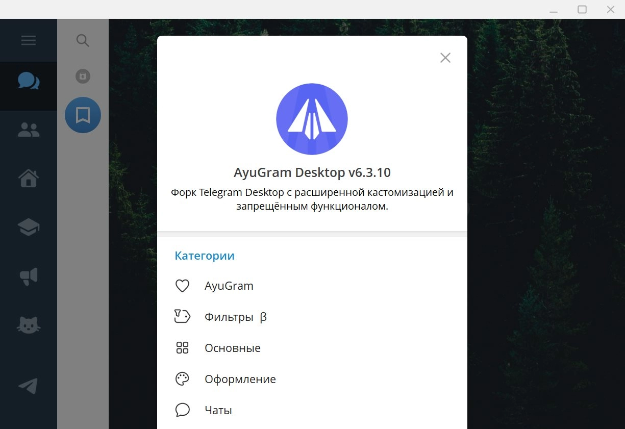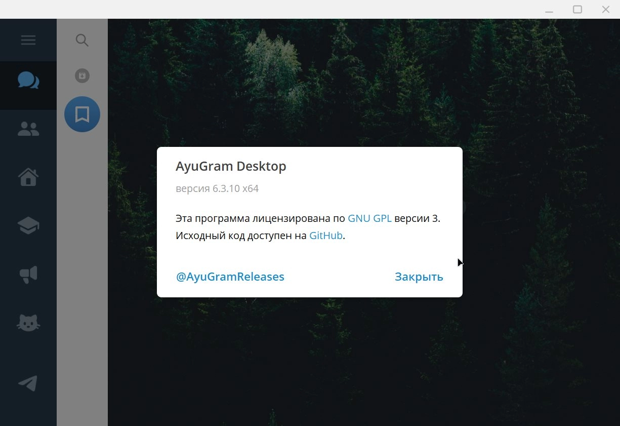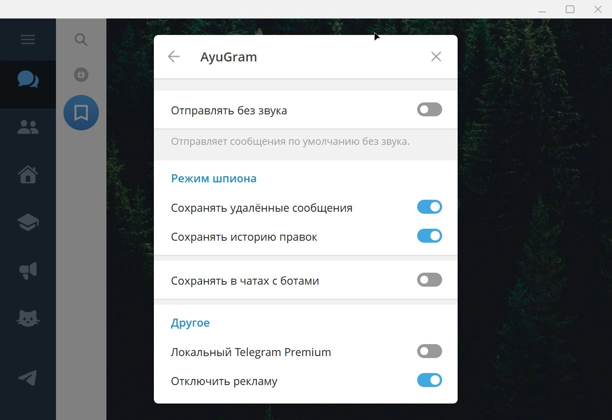 AyuGram — кроссплатформенный кастомный клиент Telegram, который распространяется под свободной лицензией GPLv3. Не содержит рекламу и имеет открытый исходный код.
