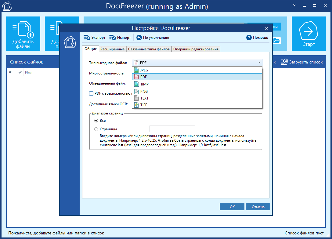 Интерфейс программы интуитивно понятен: просто перетащите файлы, выберите выходной формат и нажмите «Пуск» . Вы можете добавлять несколько файлов, целые папки, архивы RAR, ZIP и 7ZIP с документами прямо в главном окне. DocuFreezer максимально прост — вы можете использовать настройки по умолчанию для достижения наилучших результатов. Однако вы можете настроить многие параметры самостоятельно с помощью множества настроек и опций.