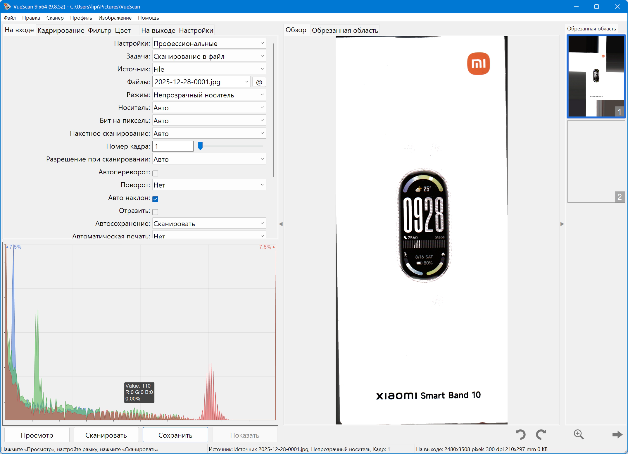 Изменение интерфейса сканера VueScan Pro 9.8.52.01