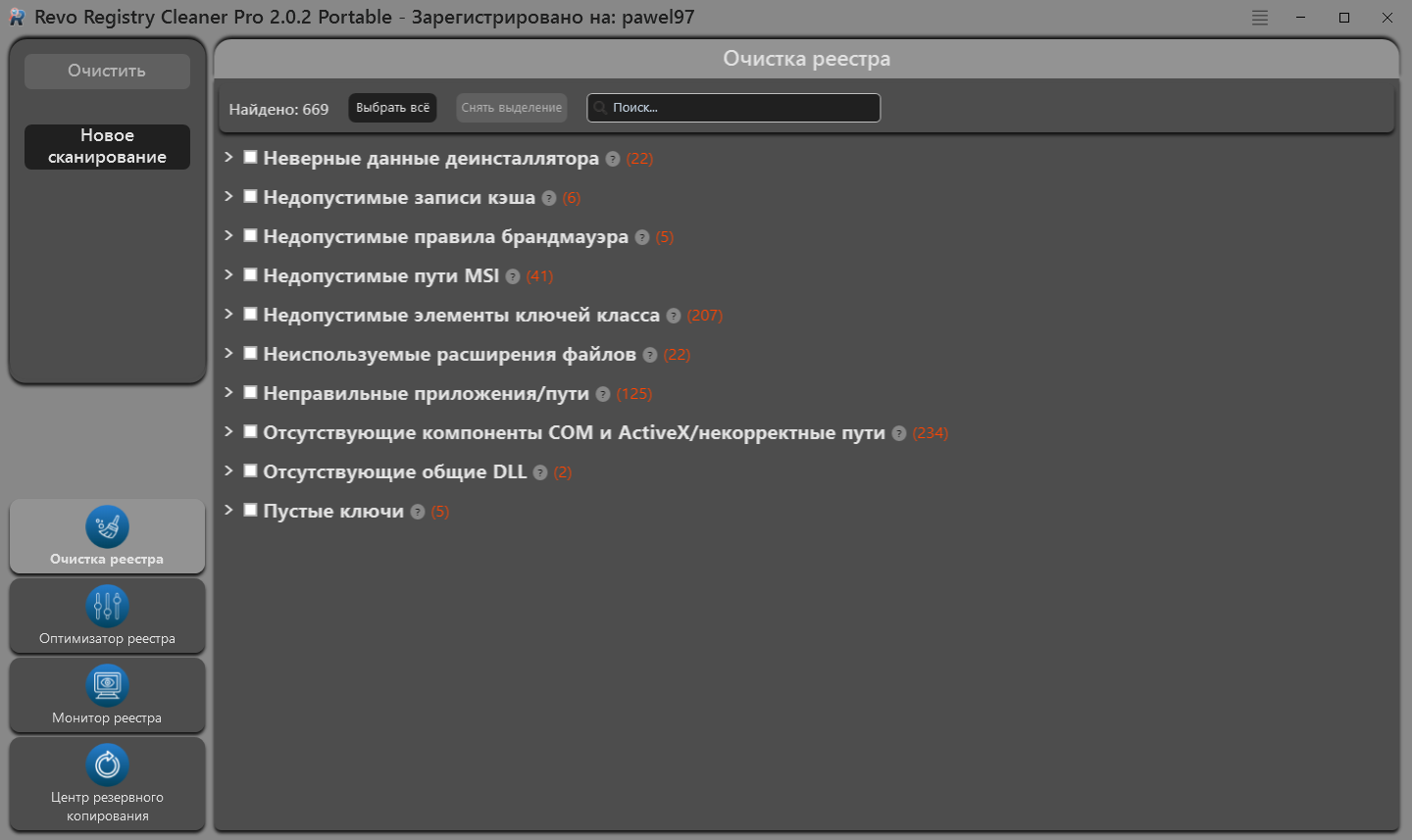 Revo Registry Cleaner Pro - это мощное и эффективное программное обеспечение для очистки и оптимизации реестра Windows. Программа разработана для удаления устаревших, поврежденных и ненужных записей реестра, которые могут замедлять работу системы, вызывать ошибки и снижать производительность компьютера. Благодаря интеллектуальному анализу и безопасным методам очистки, Revo Registry Cleaner Pro помогает поддерживать стабильность и скорость работы Windows.