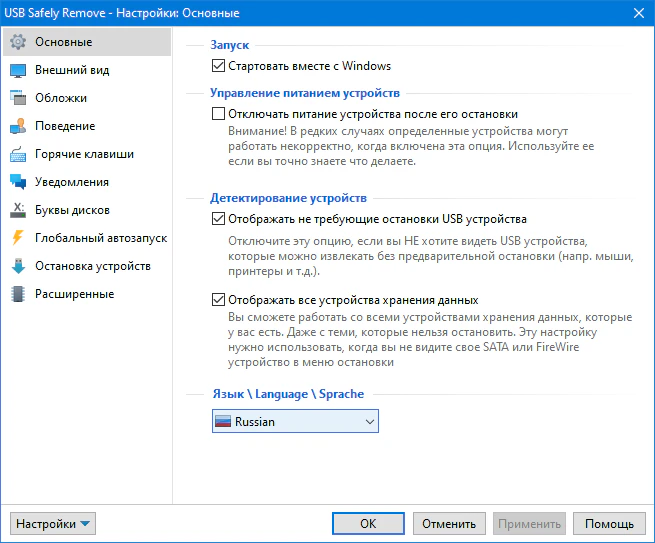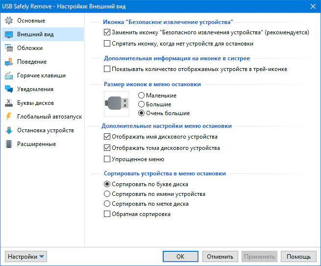 • При отключении устройства Windows 10 оставляет питание на порту устройства. Это приводит к тому, что индикатор на флэшке продолжает гореть, а жесткий диск продолжает вращаться. Все современные жесткие диски, при прекращении подачи питания на ходу, умеют парковать головки автоматически поэтому, в теории, новое поведение не должно вредить устройству. Однако, на практике, при отключении питания на ходу, внешние винчестеры могут издавать странные душераздирающие звуки, что заставляет нервничать его владельца :) USB Safely Remove позволяет изменить это поведение и заставить систему отключать USB порт при остановке устройства.