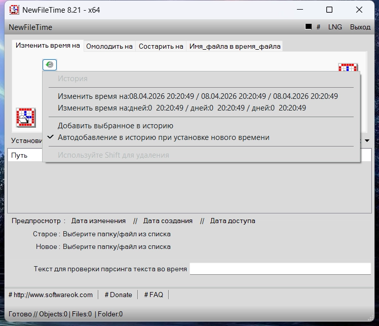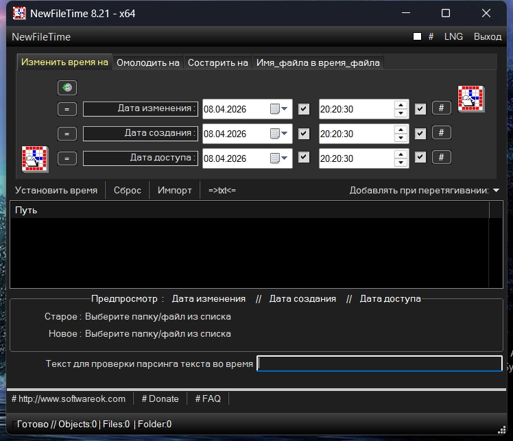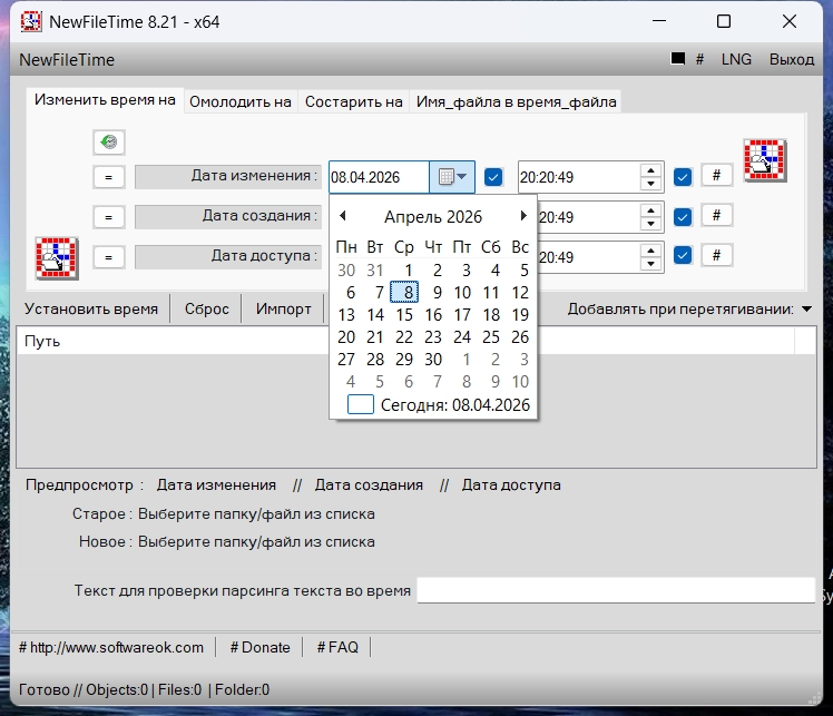 NewFileTime позволяет легко вести редактирование даты создания любого файла или целой директории находящийся на пользовательском компьютере.