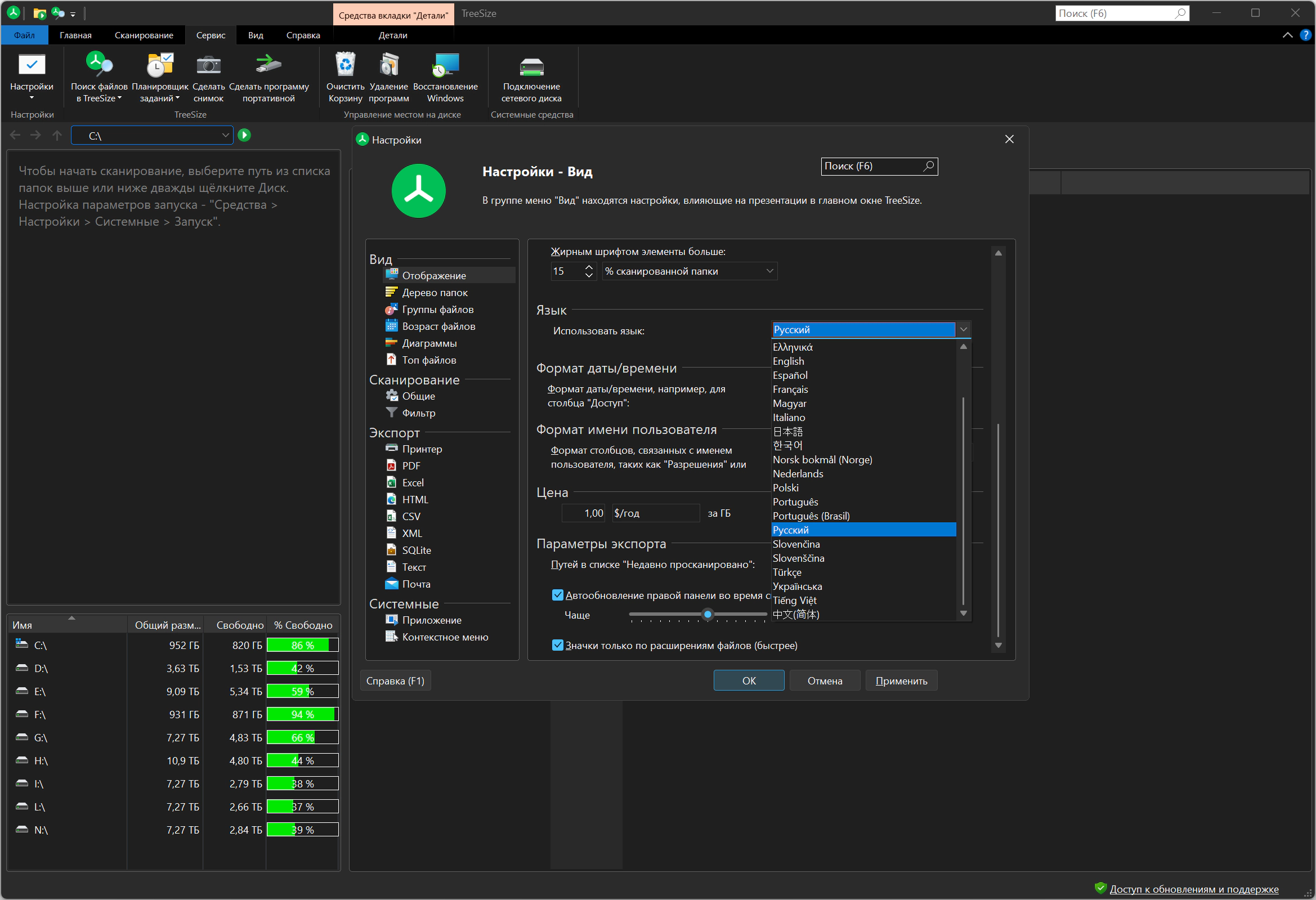 Управление дисковым пространством TreeSize Professional 9.7.1.2201