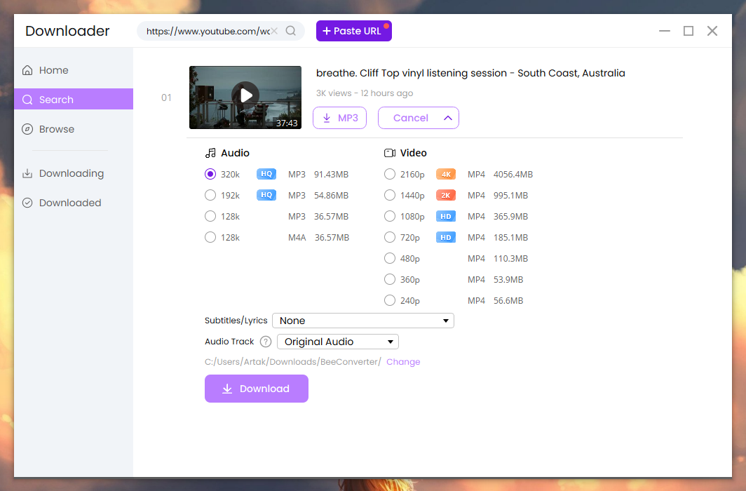 • Помимо конвертации видео и аудиофайлов с вашего ПК, вы также можете преобразовывать URL-адреса в различные форматы. BeeConverter позволяет загружать видео и музыку с Facebook, TikTok, Instagram, SoundCloud и многих других сайтов.