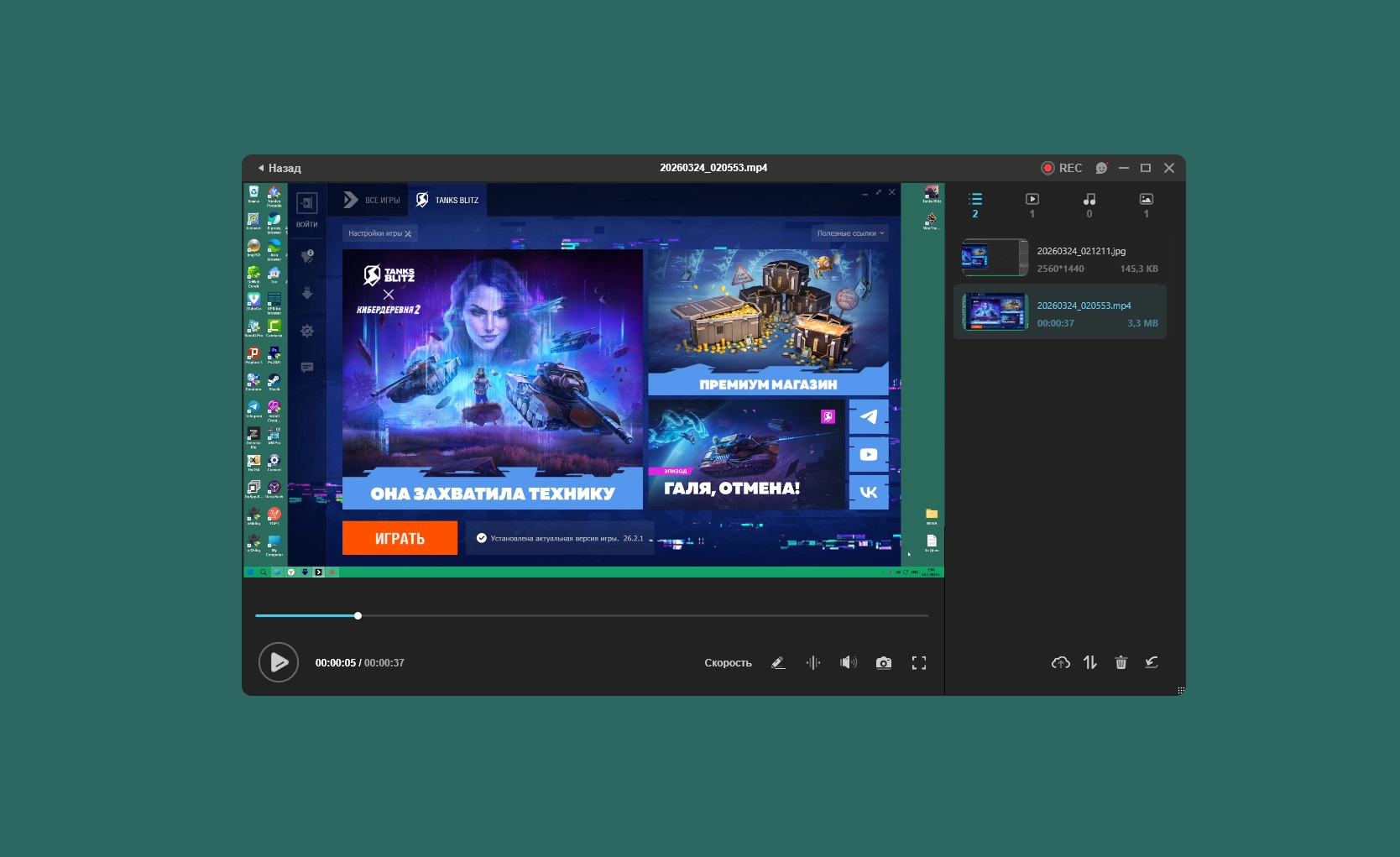 * Интегрирован простенький редактор для записанных роликов и скриншотов.