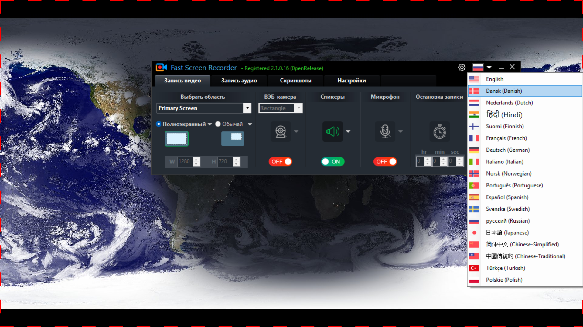 Зарегистрированная версия Fast Screen Recorder не имеет ограничений по длине видео и количеству видеозаписей.