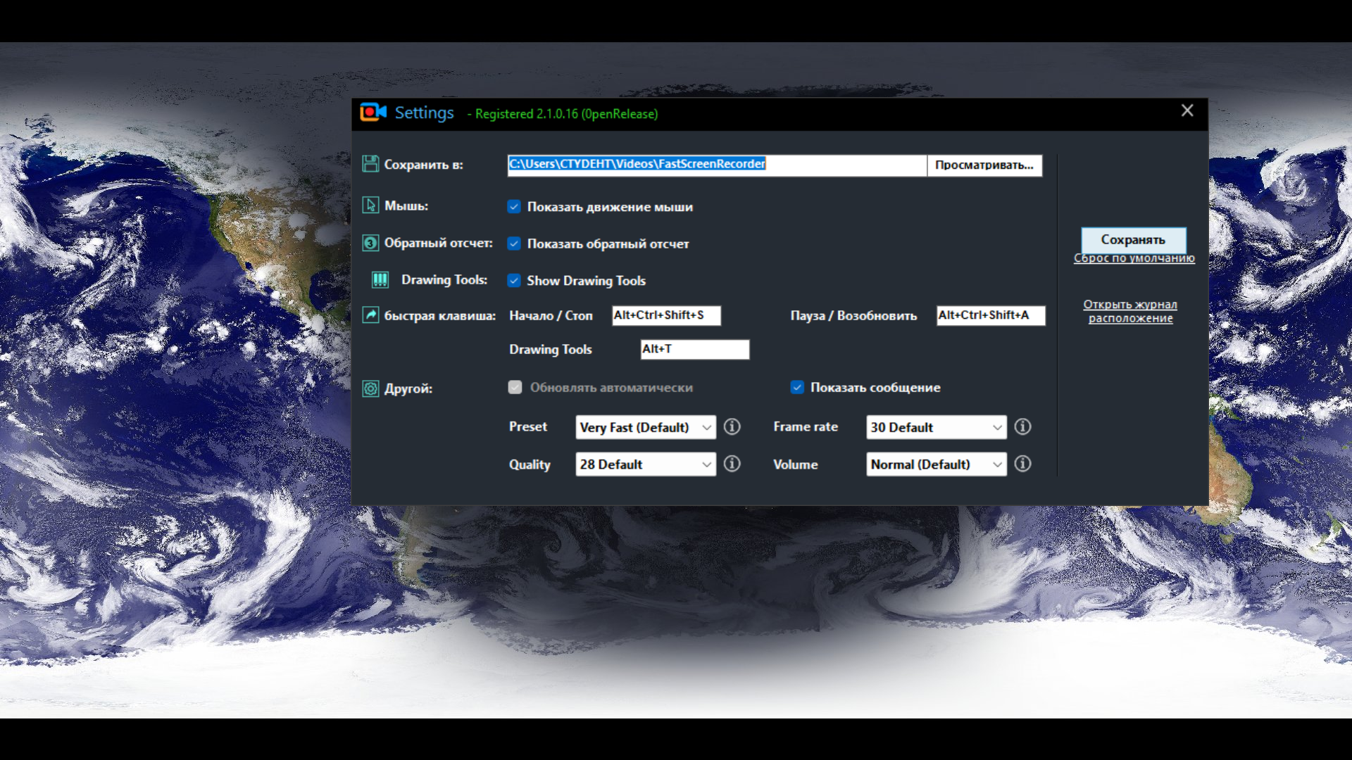 Запись видео с монитора Fast Screen Recorder 2.1.0.16 by elchupacabra