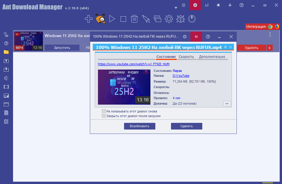 Файловый загрузчик Ant Download Manager 2.16.0 Build 91579