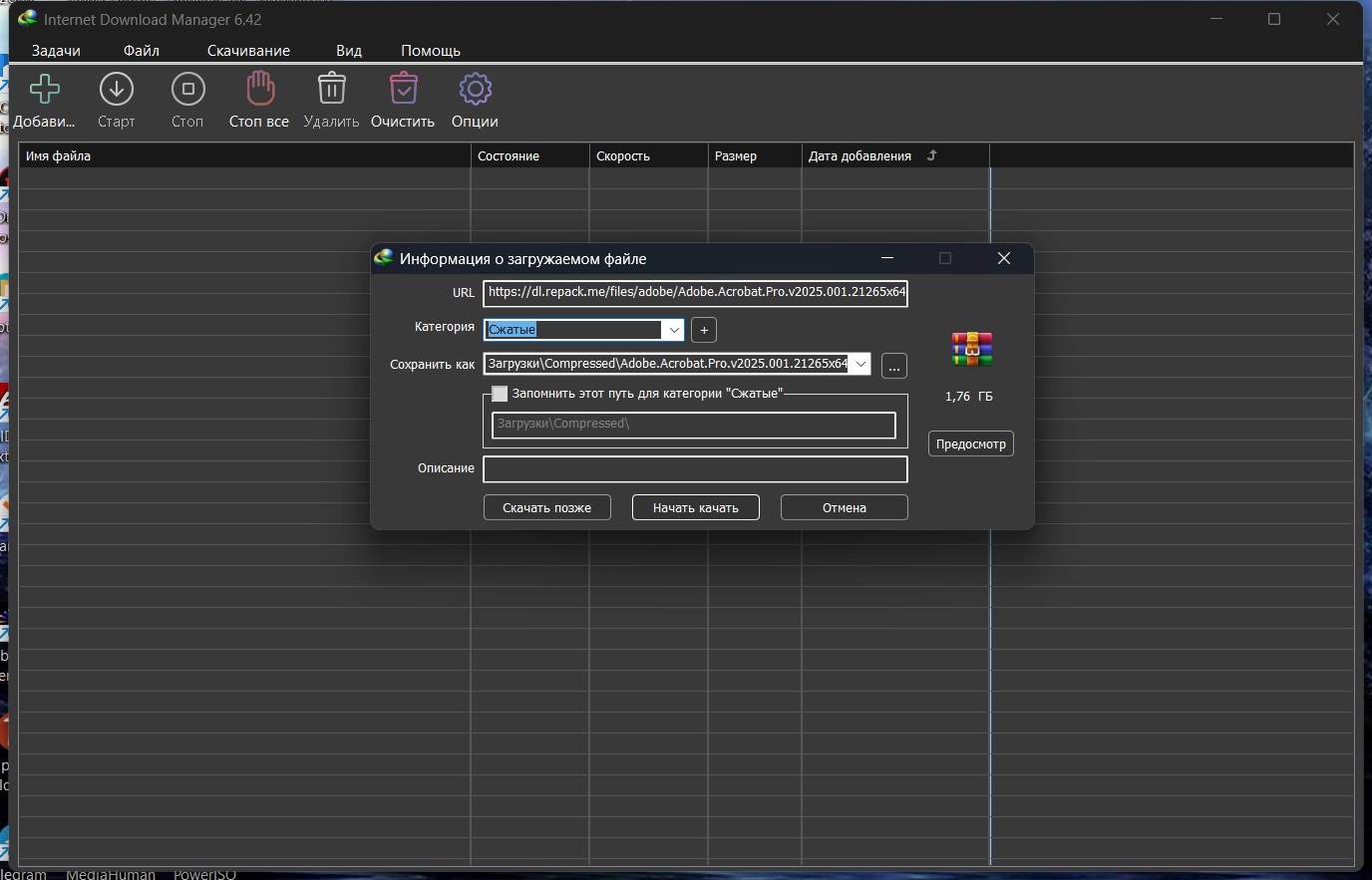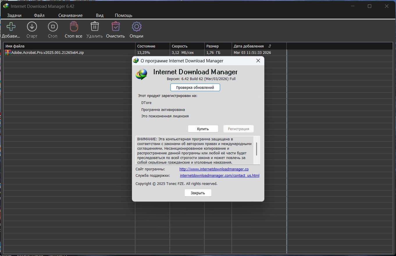 Загрузчик файлов Internet Download Manager 6.42 Build 62 by KpoJIuK